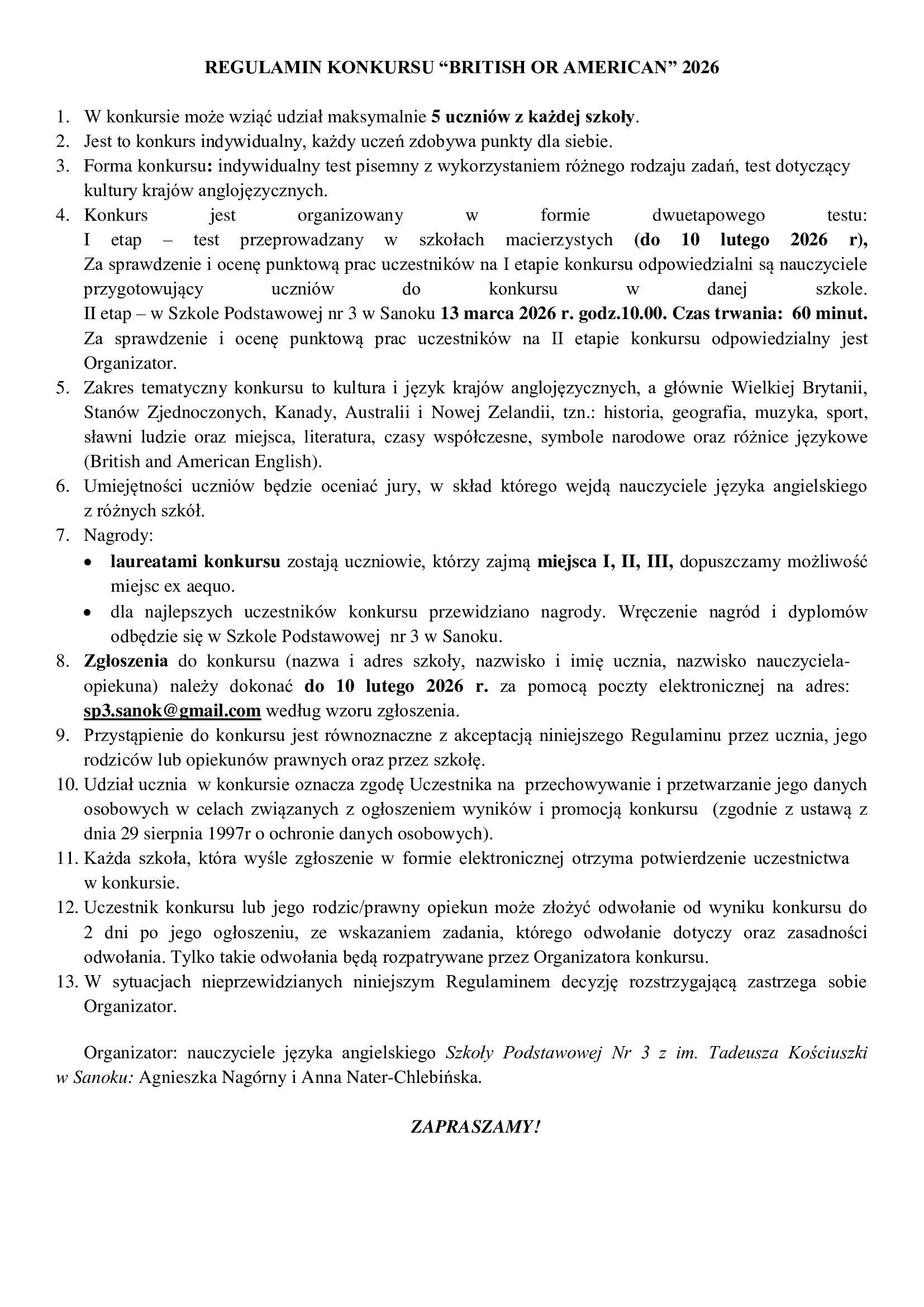 Regulamin British or American 26