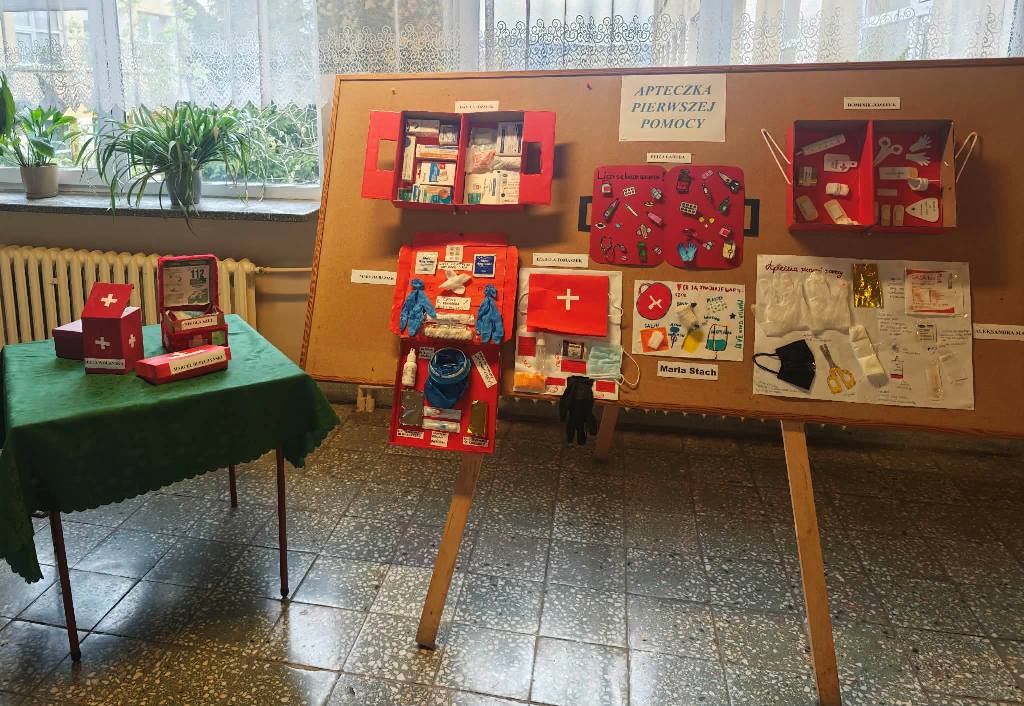 Uczniowie z zaangażowaniem i pomysłowością podeszli do realizacji zadania. Prace były nie tylko estetyczne i dopracowane, ale przede wszystkim zawierały walor edukacyjny. W kreatywny sposób zostało zaprezentowane wyposażenie apteczki oraz zastosowanie jej poszczególnych elementów. Uczestnicy wykazali się dużą świadomością w zakresie udzielania pierwszej pomocy, a także łączenia wiedzy teoretycznej z praktyką. W pracach widoczne było zwrócenie uwagi na realne sytuacje zagrożenia zdrowia i życia, co pokazuje, jak ważna i potrzebna jest edukacja w tym zakresie już od najmłodszych lat. Konkurs był nie tylko okazją do rozwijania zdolności plastyczno-technicznych, ale również do kształtowania postaw odpowiedzialności, empatii oraz gotowości do niesienia pomocy innym. Tego typu inicjatywy uczą , że każdy – niezależnie od wieku może mieć realny wpływ na bezpieczeństwo swoje i innych.