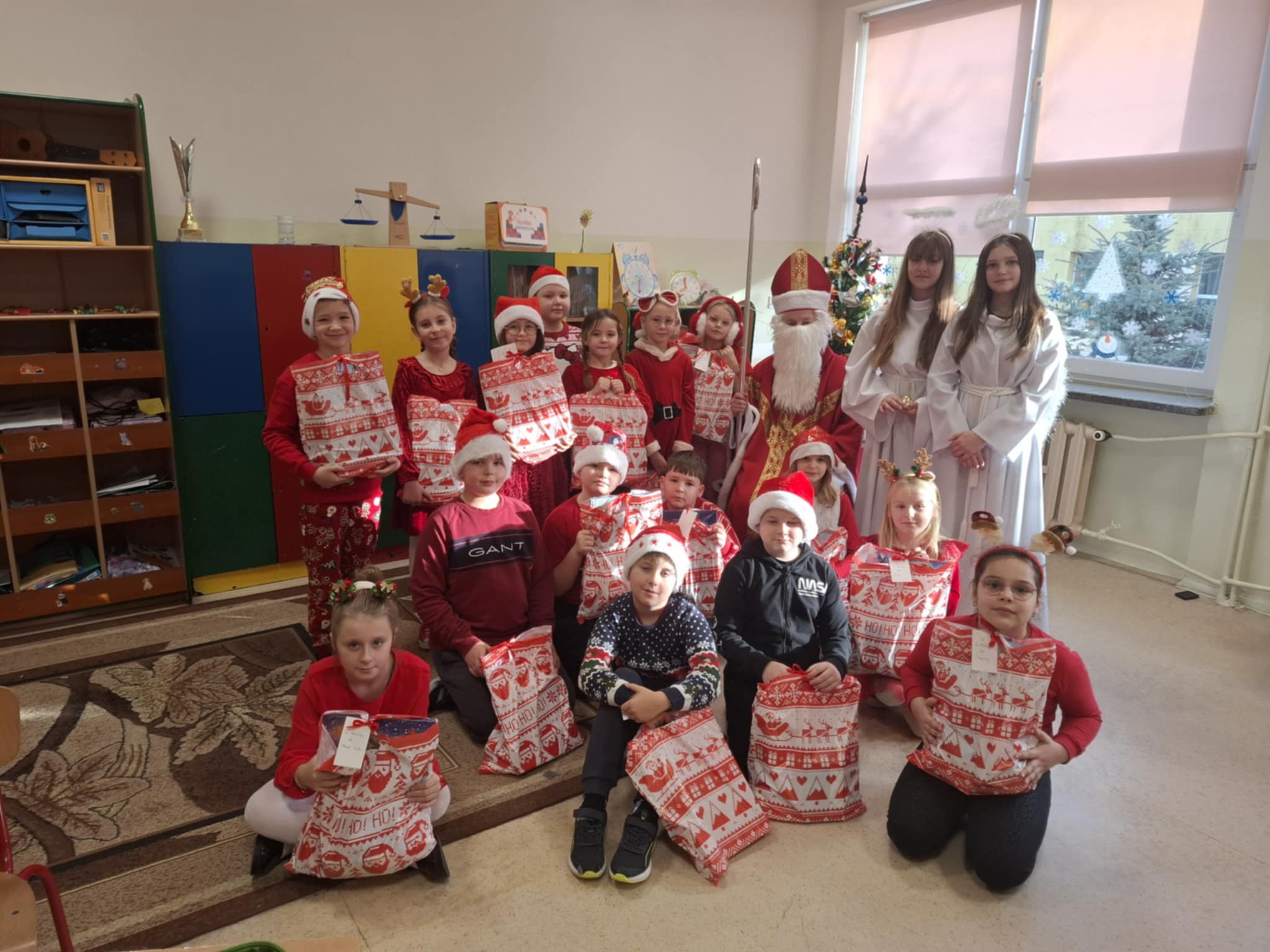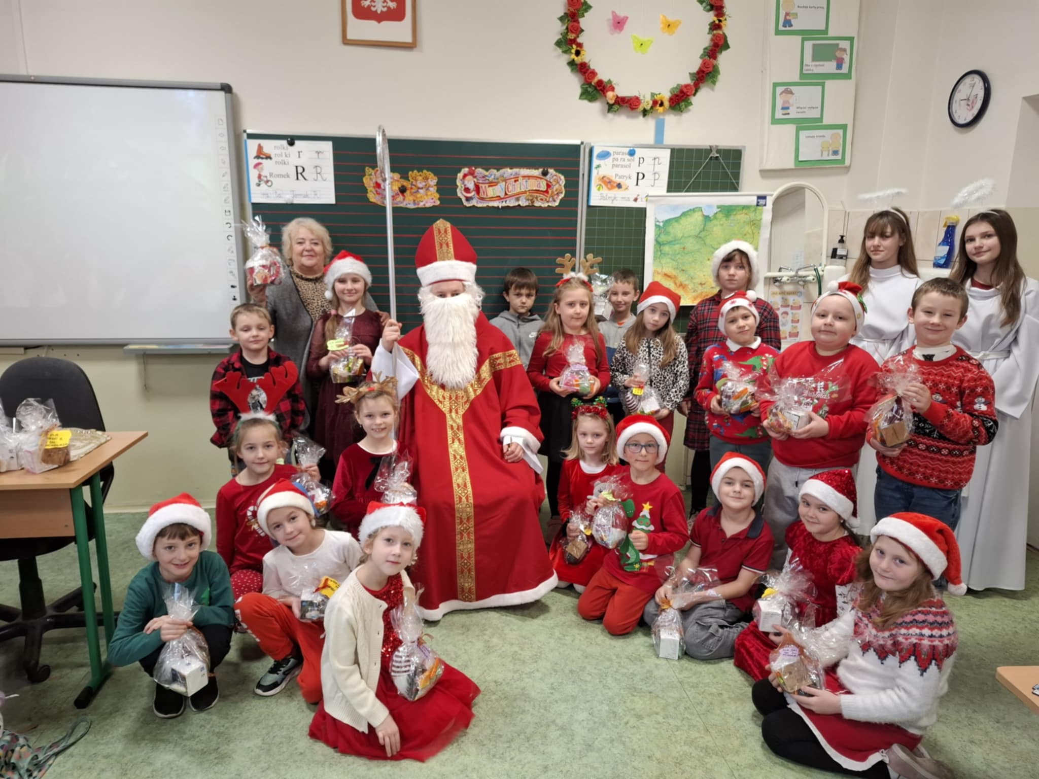 W piątek 5 grudnia do klas 1-3 przyszedł Święty Mikołaj. Dzieci od samego rana z niecierpliwością wyglądały jego przybycia. Każda klasa przygotowała dla wyjątkowego gościa krótkie piosenki. Mikołaj rozmawiał z uczniami i rozdawał prezenty. Dzieci były zachwycone i juz nie mogą się doczekać kolejnego spotkania z Mikołajem.
