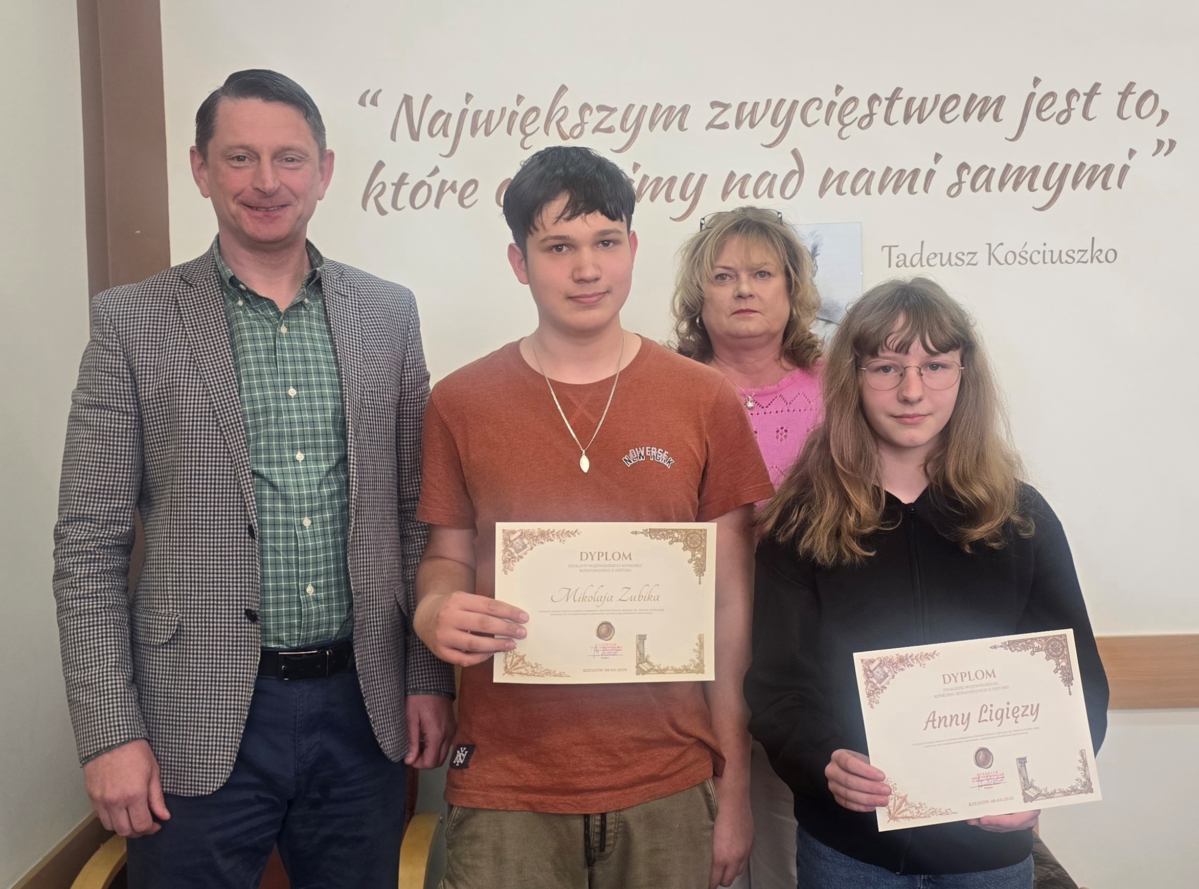 Anna Ligęza uczennica klasy 7 a oraz Mikołaj Zubik uczeń klasy 8 a zostali FINALISTAMI WOJEWÓDZKIEGO KONKURSU KURATORYJNEGO Z HISTORII. To ogromne wyróżnienie, które potwierdza głęboką wiedzę historyczną oraz wielką pasję.