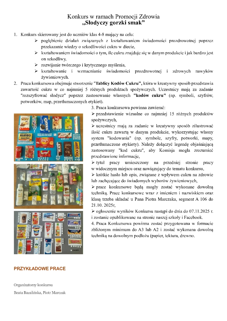Konkurs w ramach Promocji Zdrowia ,,Słodyczy gorzki smak”