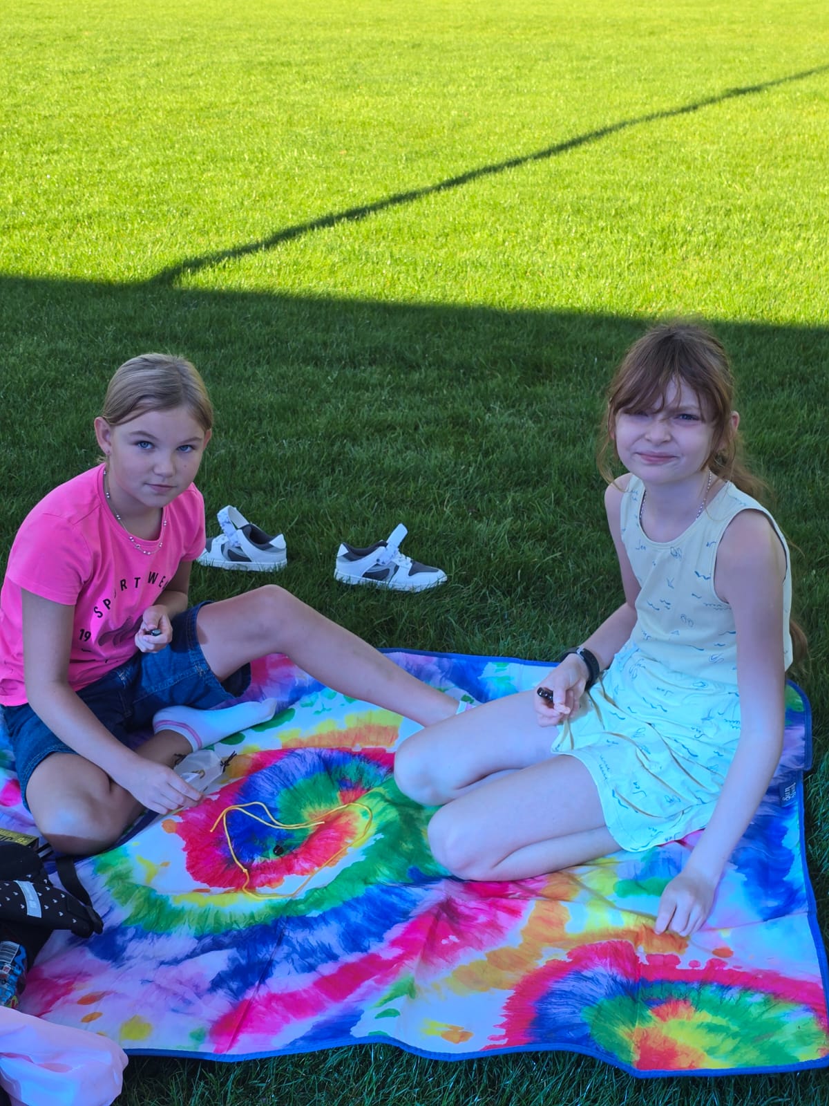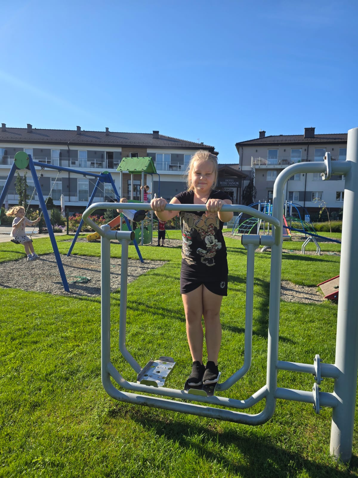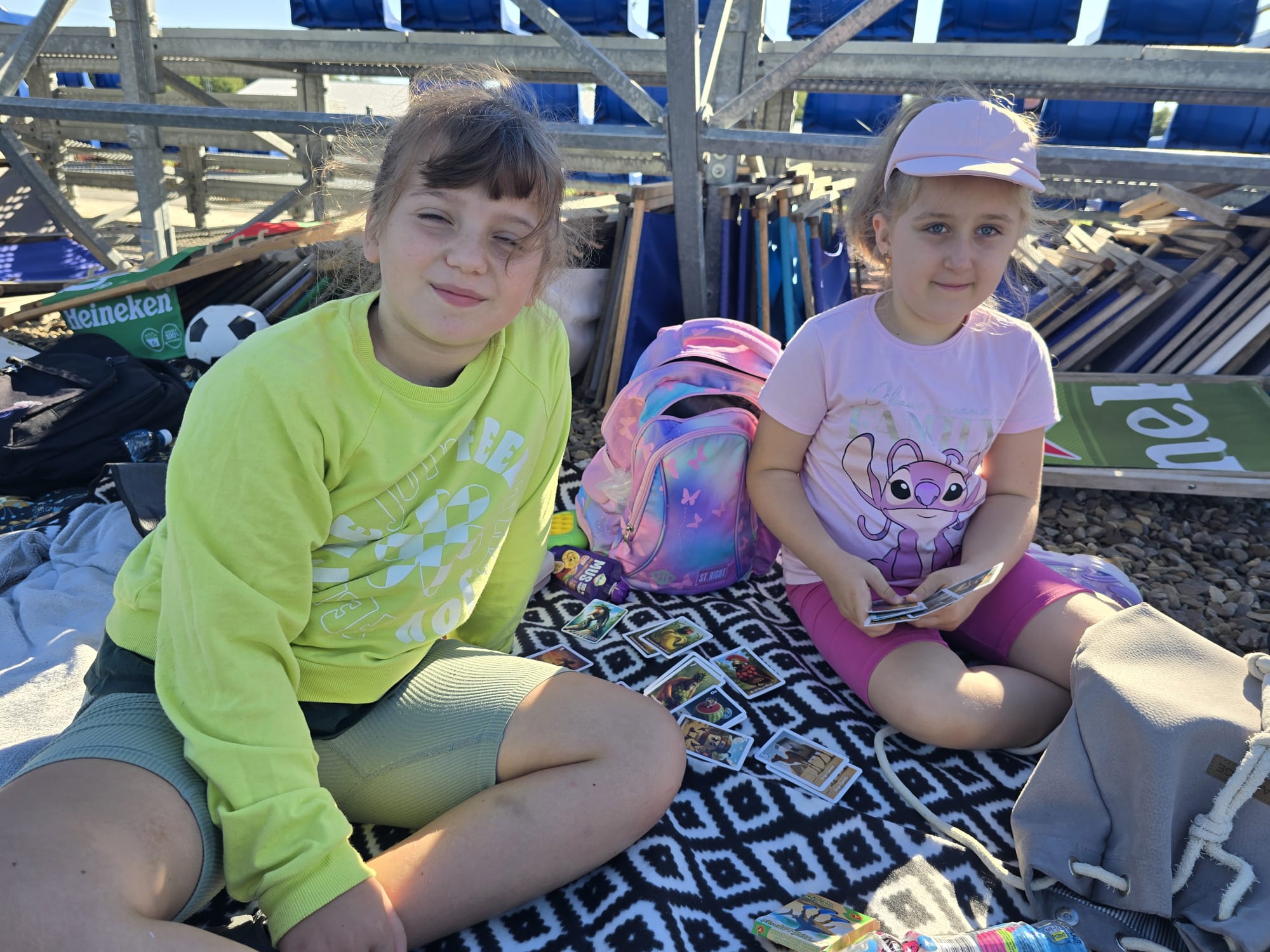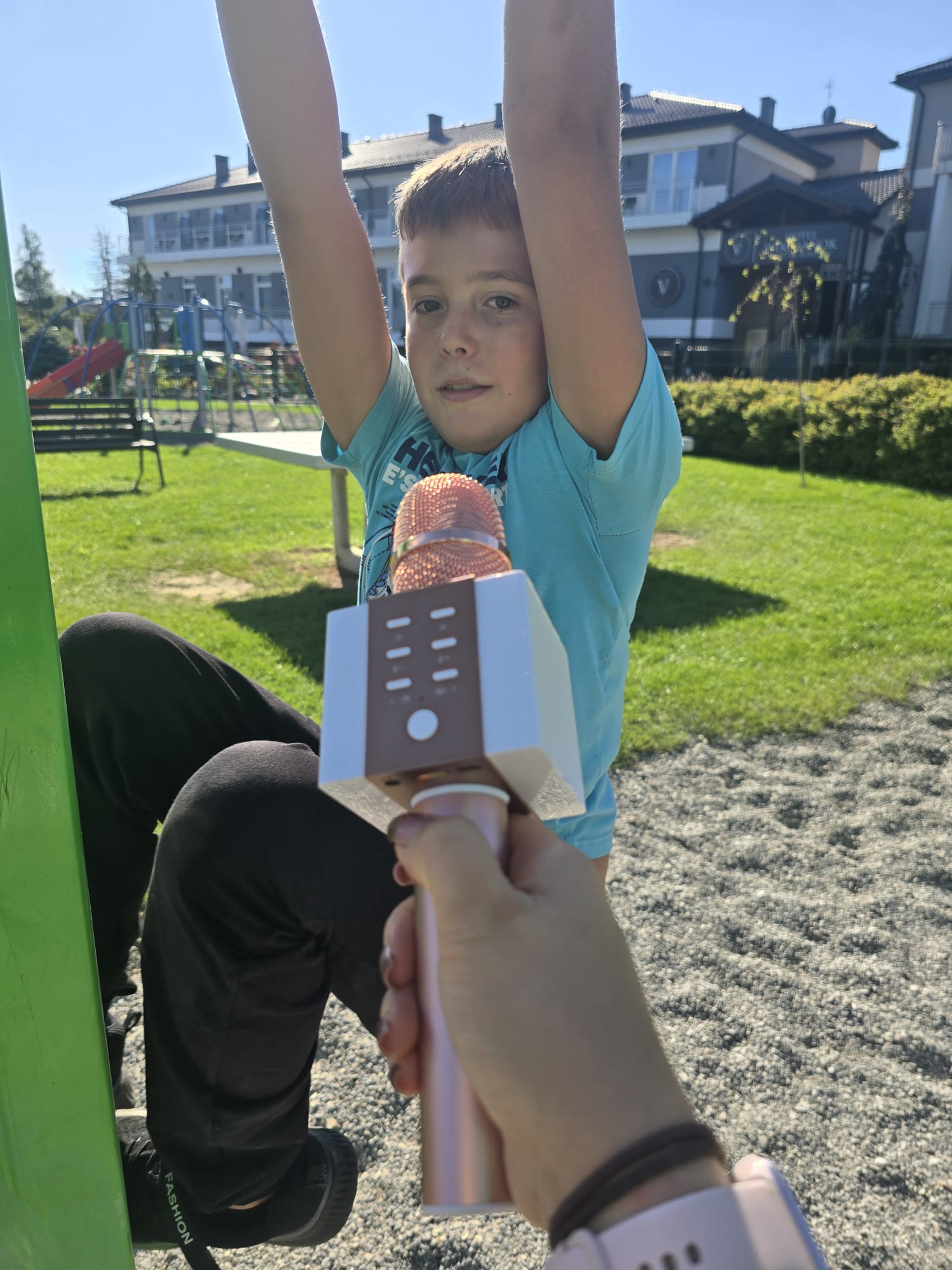 Wszystko nam sprzyja tego dnia - wspaniała pogoda, doskonałe humory i plecaki załadowane smakołykami. Dzieci na kocykach zajadają pyszności, grają w gry planszowe oraz karciane. Na stadionie w tym czasie rozgrywane są mecze piłki nożnej wśród naszych uczniów oraz inne rozgrywki sportowe. W powietrzu unoszą się pięknie mieniące się bańki mydlane. Dzięki uprzejmości właściciela obiektu - Pana Jerzego Domaradzkiego, dzieci mogą korzystać również z wszystkich atrakcji dostępnych przy stadionie - z siłowni zewnętrznej, drążków, ścianki wspinaczkowej, stołu tenisowego, tyrolki oraz z dmuchańca. Ta ostatnia atrakcja przyciągnęła długie kolejki chętnych amatorów zjeżdżania.