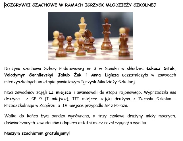 ROZGRYWKI SZACHOWE W RAMACH IGRZYSK MŁODZIEŻY SZKOLNEJ