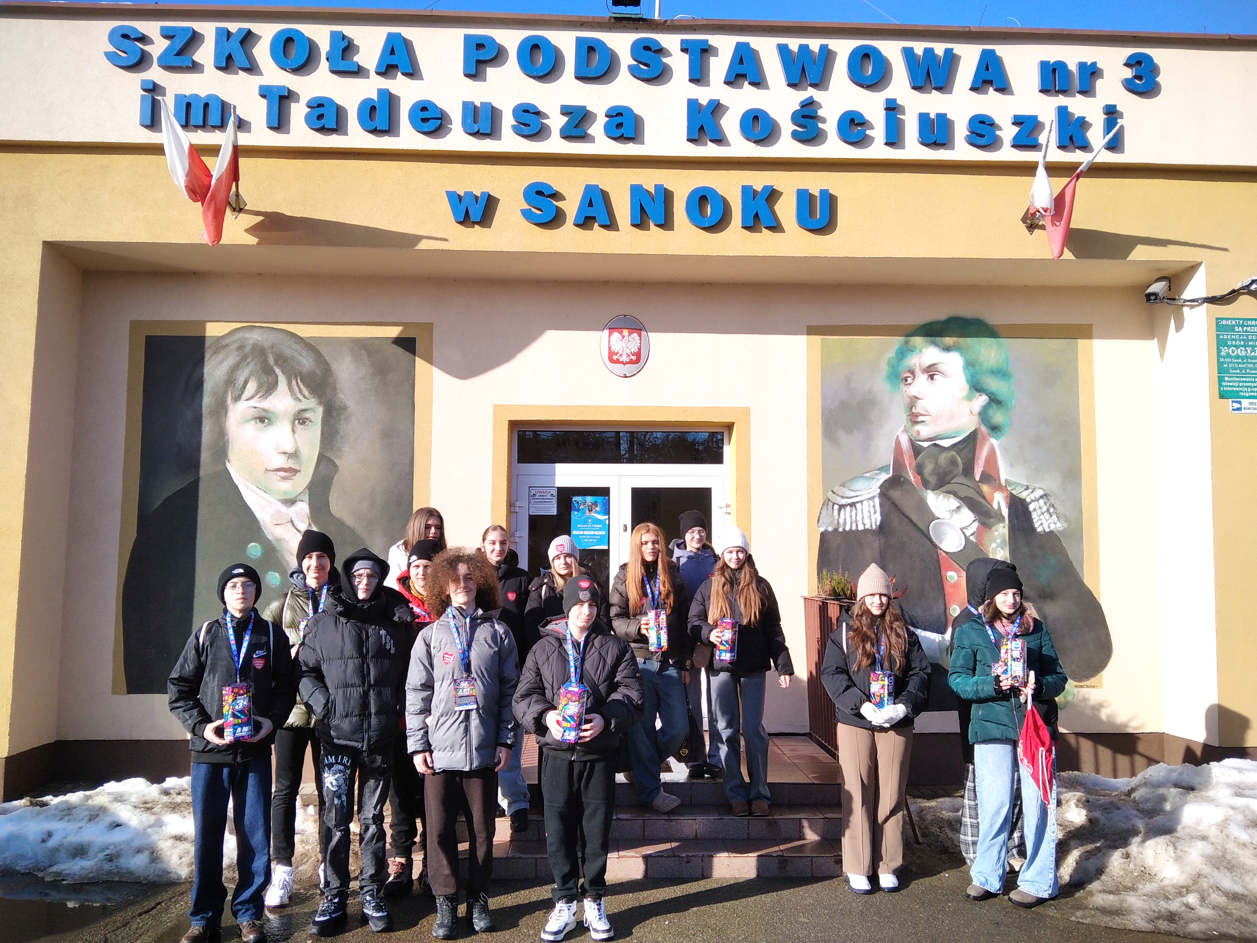 Jak co roku, nasi uczniowie wyruszyli na ulice Sanoka, by kwestować na rzecz ogólnopolskiej akcji. 18 wolontariuszek i wolontariuszy – uczennic i uczniów klas ósmych i jeden uczeń klasy piątej naszej szkoły zdecydowało się pracować na rzecz orkiestry.