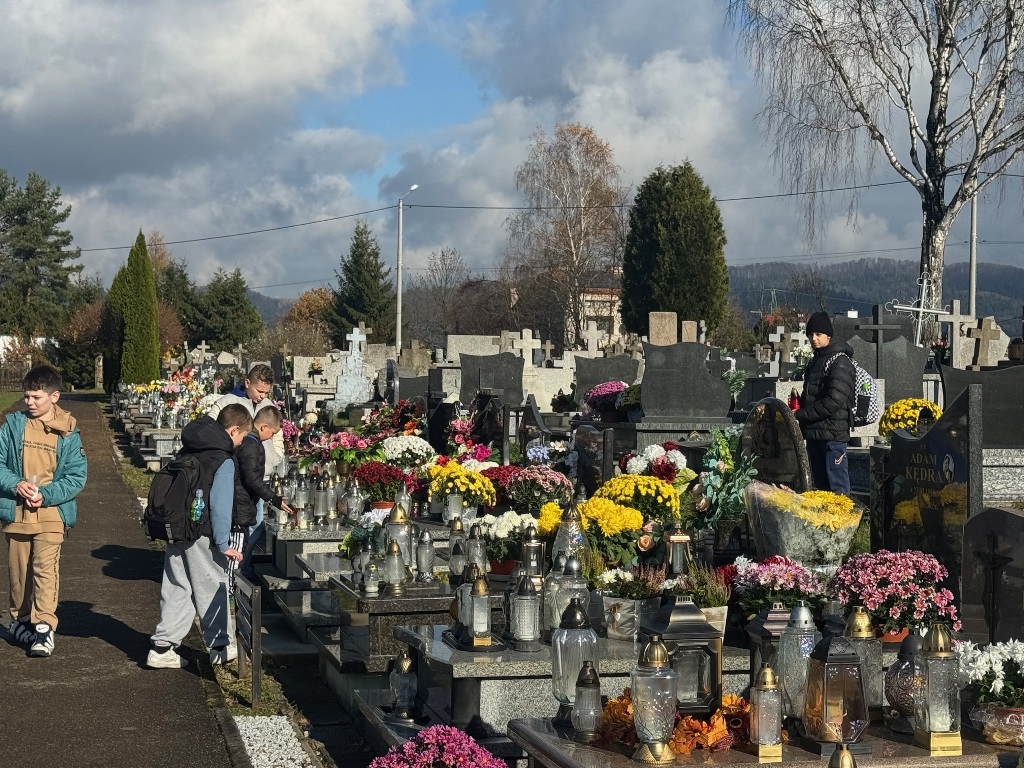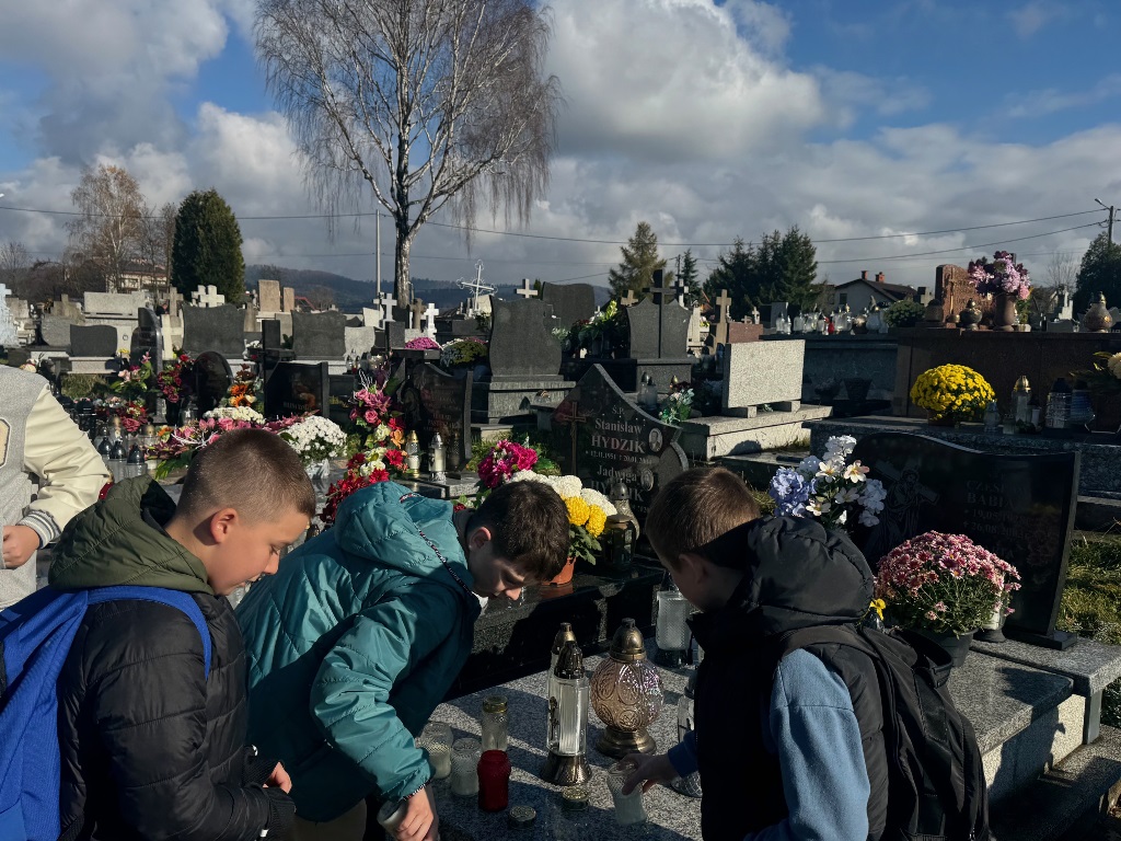Uczniowie klasy 4b również włączyli się w akcję MEN. W dniu 4 listopada odwiedzili wraz z opiekunami cmentarz przy ul. Lipińskiego. Zapalili znicze na opuszczonych i zapomnianych grobach oraz na mogiłach członków swoich rodzin. Odszukali również groby nauczycieli Szkoły Podstawowej nr 3 w Sanoku i zapalając znicze zachowali odpowiednią postawę okazując szacunek zmarłym.