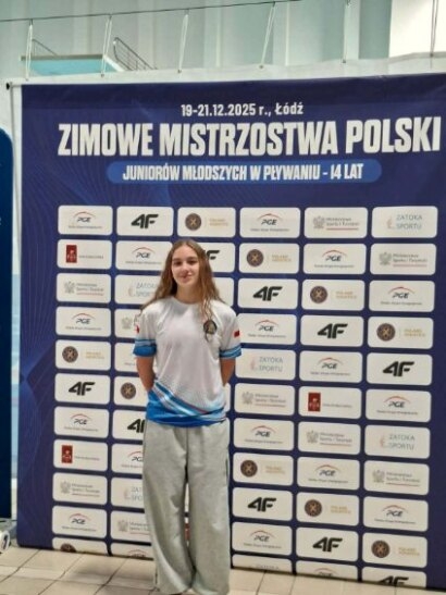 Z dumą informujemy o sportowych osiągnięciach naszej uczennicy, Aleksandry Dworzańskiej, która w dniach 19–21 grudnia 2025 roku reprezentowała barwy klubowe podczas Zimowych Mistrzostw Polski Juniorów Młodszych (14 lat) w Łodzi.