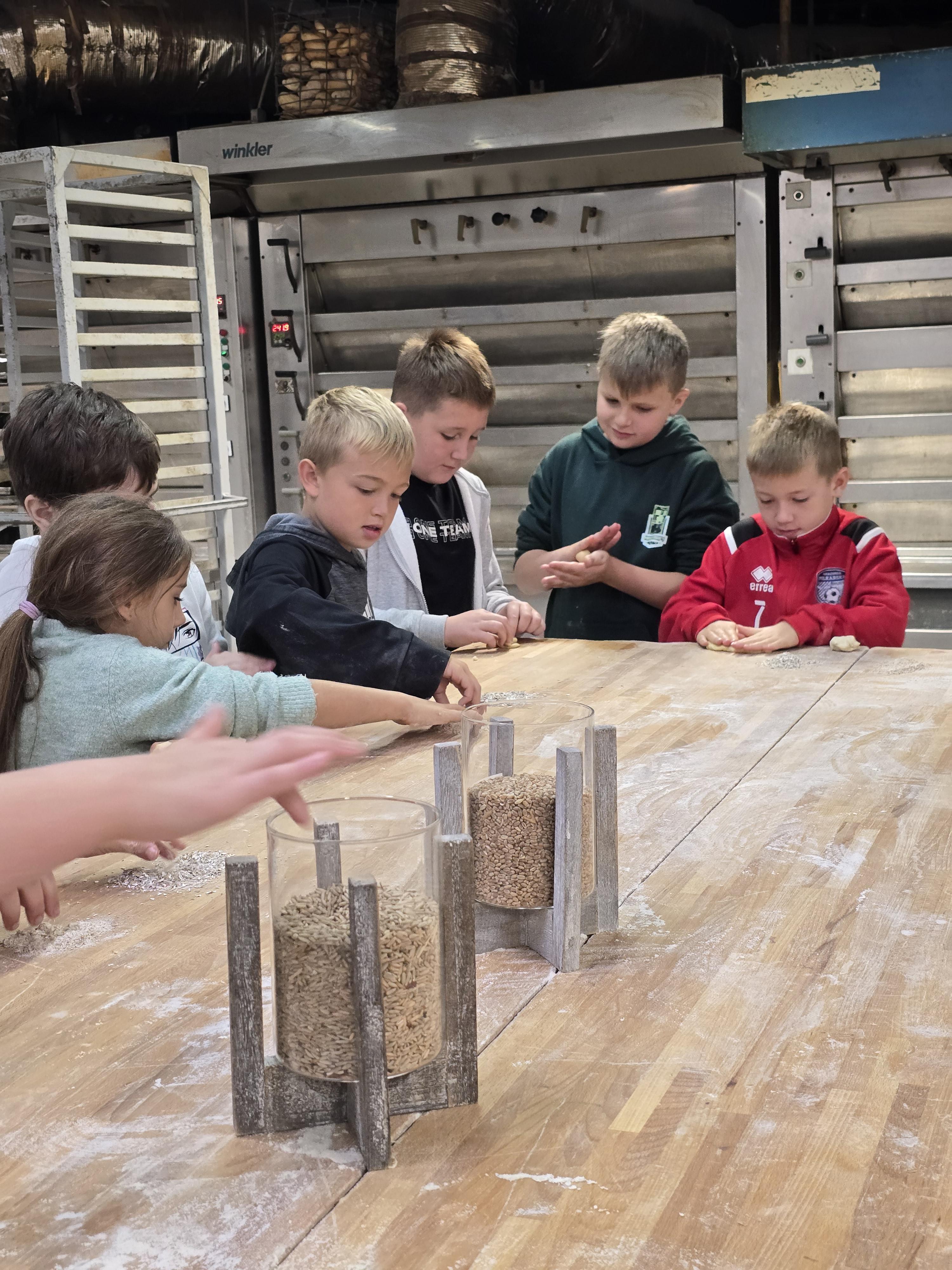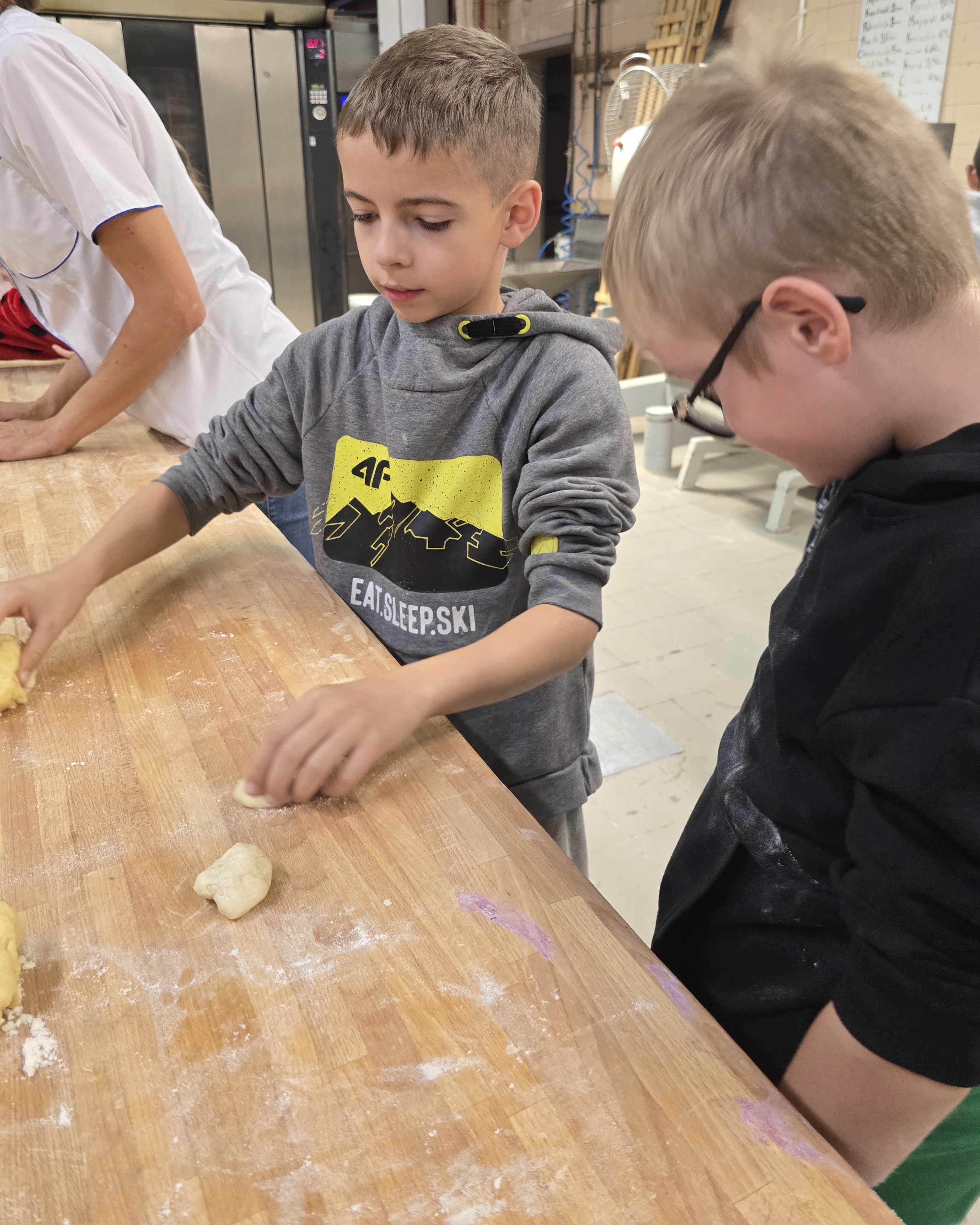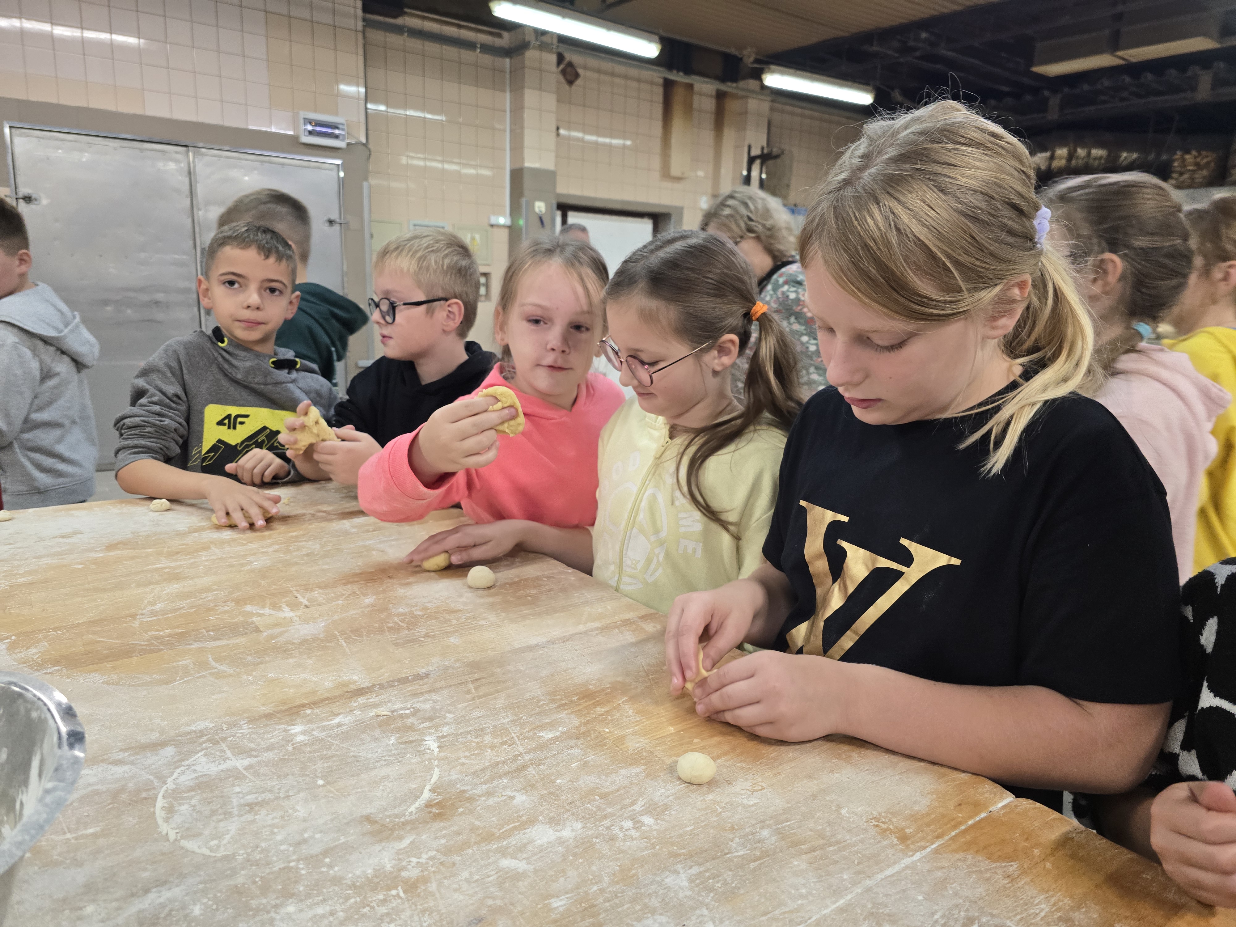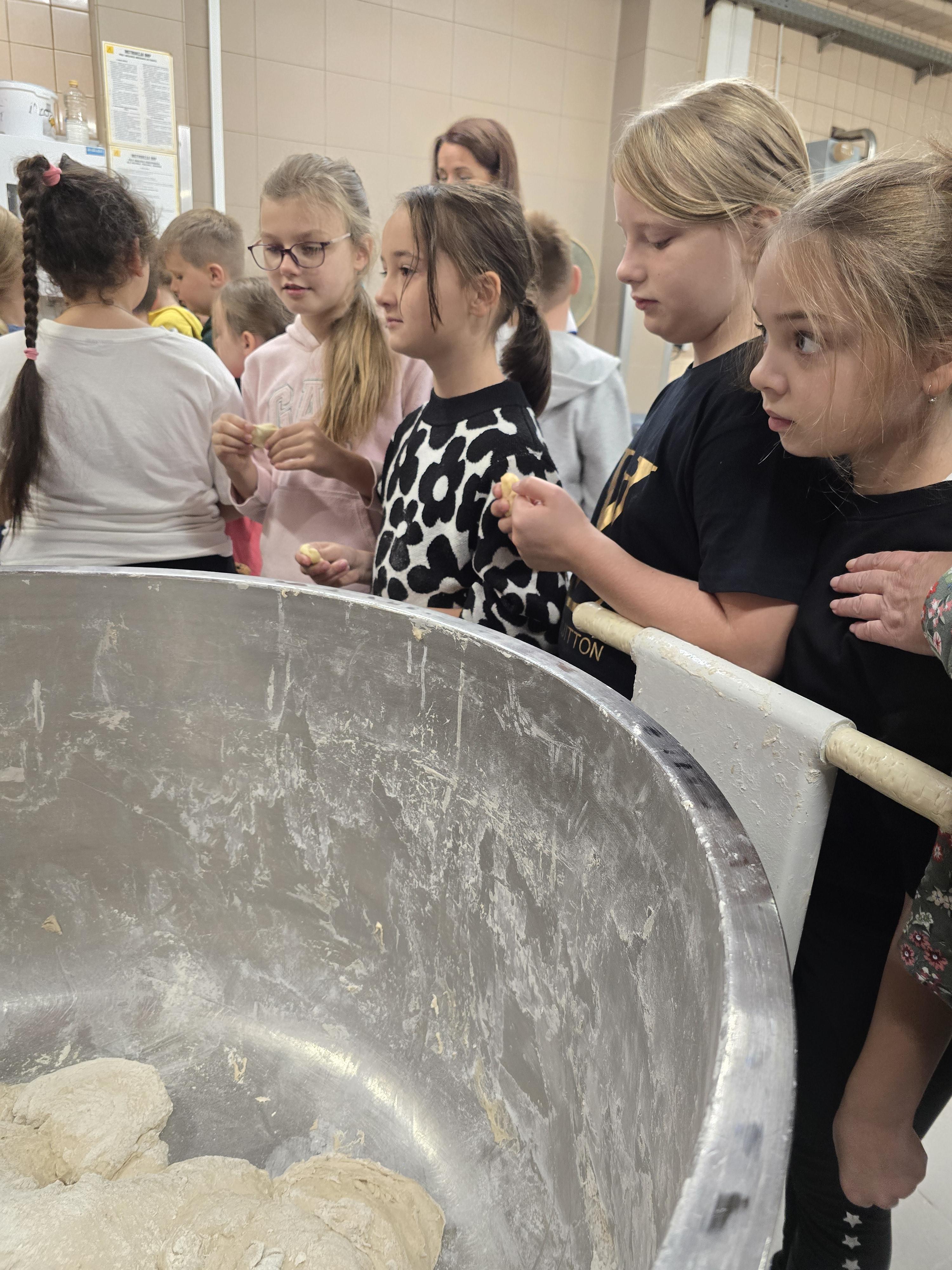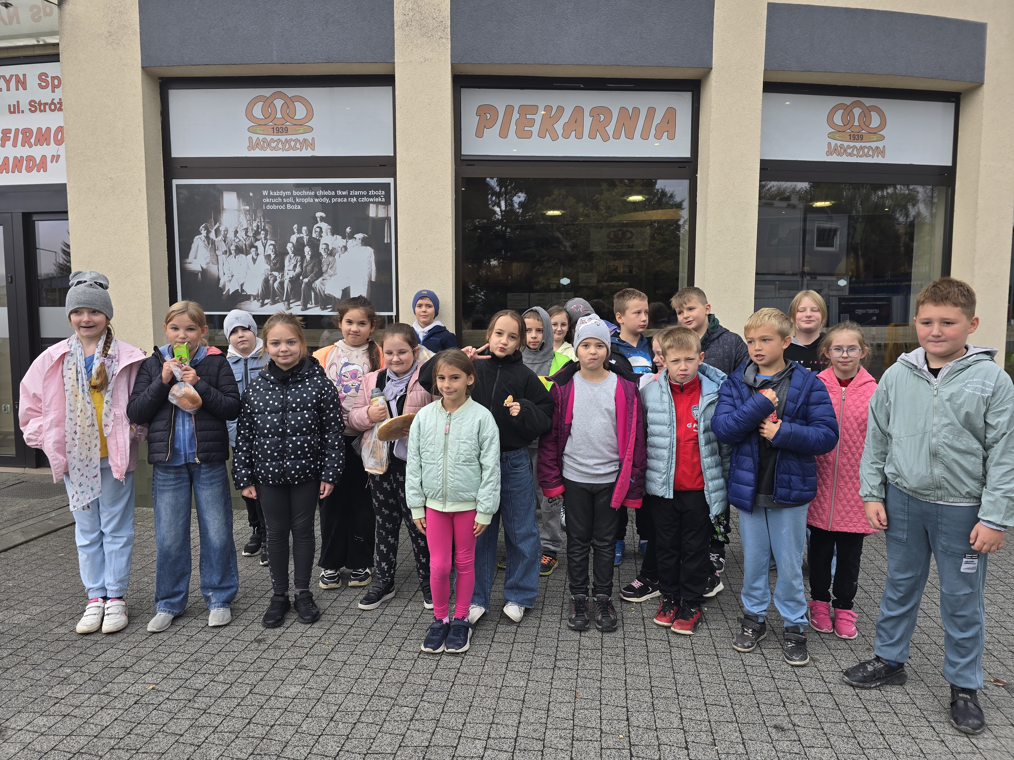 Uczniowie klasy 3b wybrali się do piekarni "Jadczyszyn". Dzieci mogły obejrzeć piekarnię od środka. Poznały etapy powstawania pieczywa, produkty i maszyny potrzebne do jego wypieku oraz pracę piekarzy. Trzecioklasiści mieli również możliwość ugniatania i formowania ciasta. Miłą niespodzianką była degustacja pysznych ciasteczek. Na koniec wycieczki dzieci mogły kupić swoje ulubione pieczywo w sklepie firmowym.