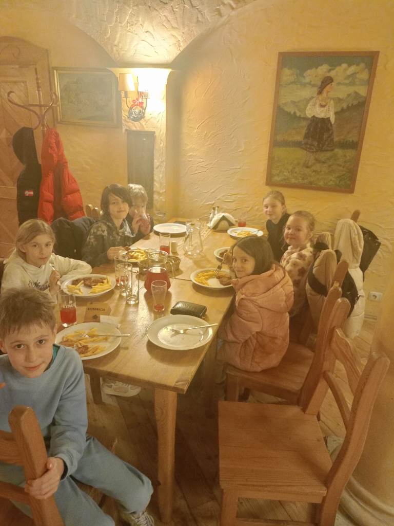 Wyczerpani spożyli pyszny posiłek w restauracji znajdującej się obok Fly Parku – „Gościńcu”.